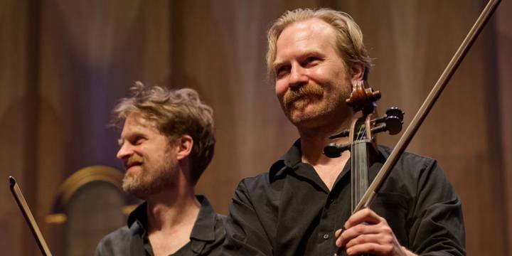 Med på turnéen var de fire strygere i Den Danske Strygekvartet, som i forvejen er et stort navn i USA. Her ses kvartettens bratschist Asbjørn Nørgaard og cellist Fredrik Sjölin.