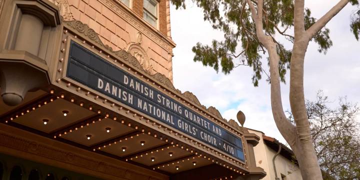 Den første koncert på DR Pigekorets turné var i det historiske Granada Theatre i Santa Barbara på den amerikanske østkyst. Her gav koret og Den Danske Strygekvartet koncert for en udsolgt sal med over 1500 publikummer.